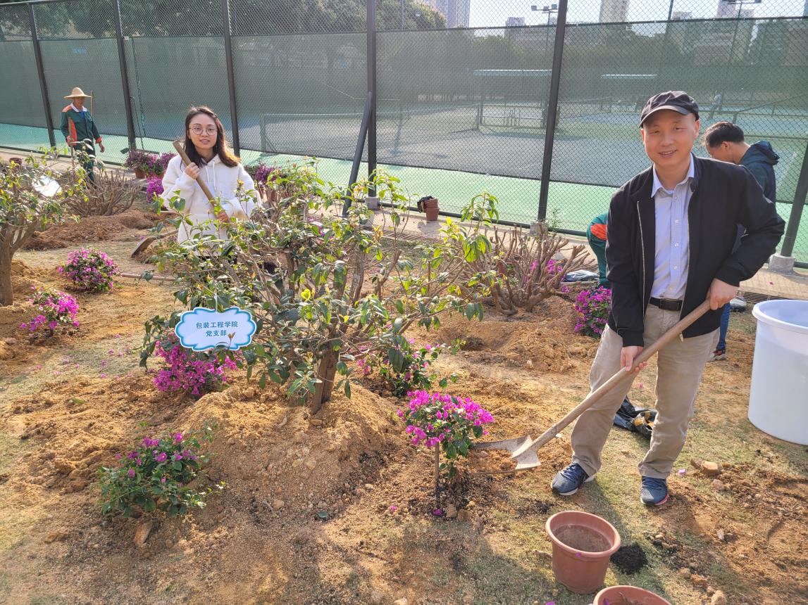 阳春三月,草长莺飞。3月11日,新葡京博彩官网门户主页 党支部参加校区绿化美化植树活动,新葡京博彩 书记吕新广在体育馆网球场旁的“支部林”区域,带领着支部成员种上了四棵勒杜鹃。