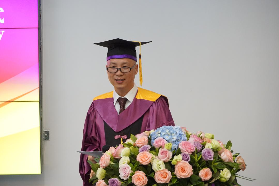 在结束观看学校主会场直播后,新葡京博彩 典礼正式开始。吕新广在致辞中代表新葡京博彩 向全体毕业生表示热烈的祝贺和衷心的祝福,向指导、培育他们的父母和老师表示衷心感谢。从“忠信笃敬”的校训到全体师生同心抗疫,他带领大家深情回忆了同学们在学校、新葡京博彩 求学的美好时光,嘱托大家热爱伟大祖国,坚定树立中国特色社会主义道路自信、理论自信、制度自信、文化自信,让青春在党和人民最需要的地方绚丽绽放;秉承终身学习的信念,不断学习各种新思想新理念新技术,努力提升本领、增长才华,一步一步成就自己的人生理想;注重身体健康,有健康才有远大的梦想,有梦想才有人生的辉煌。“每天锻炼一小时,开心工作五十年,幸福生活一辈子”。幽默诙谐的话语、情深意长的嘱托,赢得现场学生的阵阵掌声。致辞最后,吕新广鼓励大家在各自的人生征途上踔厉奋发、笃行不怠,乘势而上、继续奋斗,勇敢追逐梦想,创造美好未来!