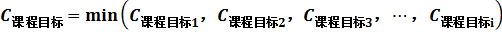 达成度评价结果采用“最小值”原则,即课程考核成绩(课程考核成绩分析法)与问卷调查(尺规分析法)评价结果的最小值作为该课程的达成度评价值。